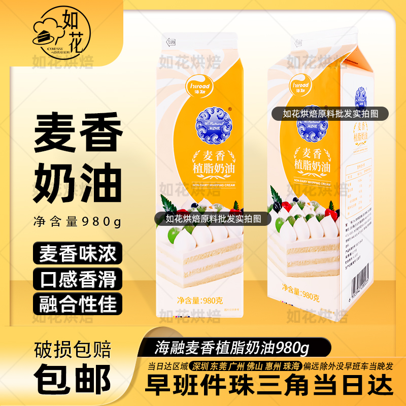 海融海纳德麦香植脂奶油烘焙原料冰淇淋蛋糕裱花淡奶油980g家用商