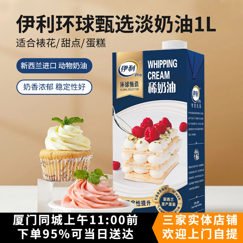 新西兰进口伊利环球甄选动物性稀奶油1L蛋糕裱花淡奶油烘焙原料