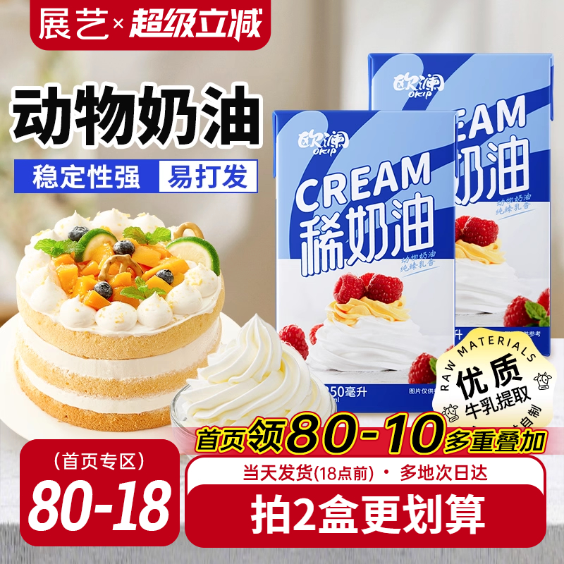 展艺欧澜淡稀奶油250ml 动物性蛋糕裱花家用小包装烘焙专用材料