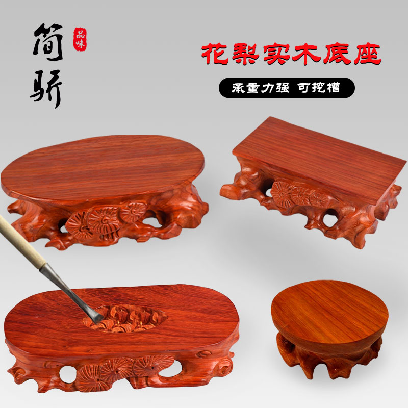 奇石头底座免挖槽实木带凹槽不规则石头黄河泰山石摆件整木托架子