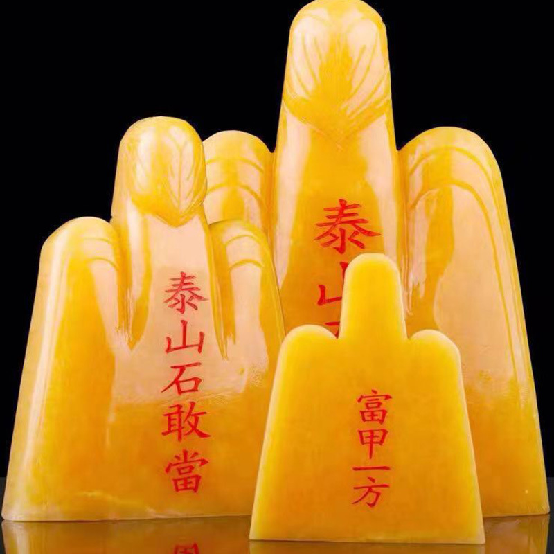 天然泰山石敢当黄色泰山石摆件米黄玉山子补角路冲大门口客厅装饰