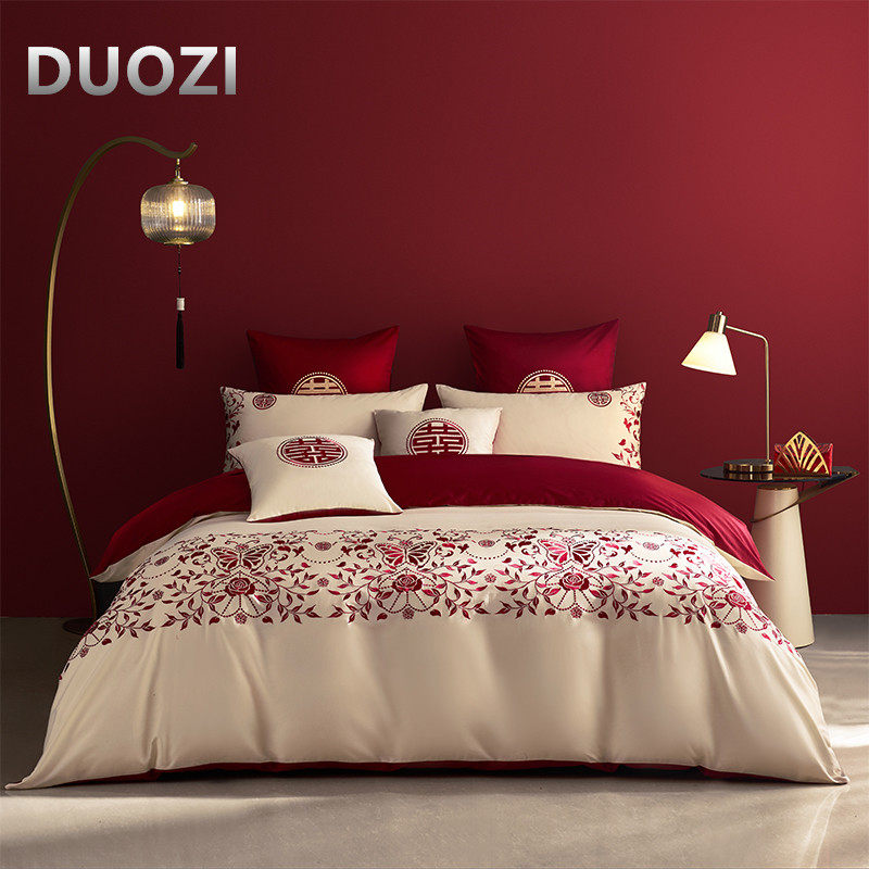 多喜爱60支全棉四件套婚庆结婚喜被床上用品婚嫁六件套床品被套