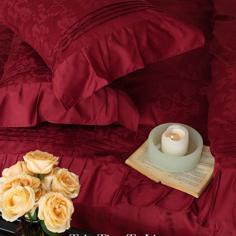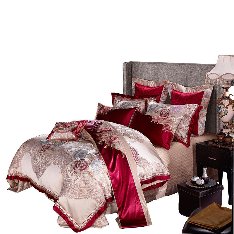 欧式贡缎酒红色婚庆四件套床品全棉结婚床上用品简约美式六多件套