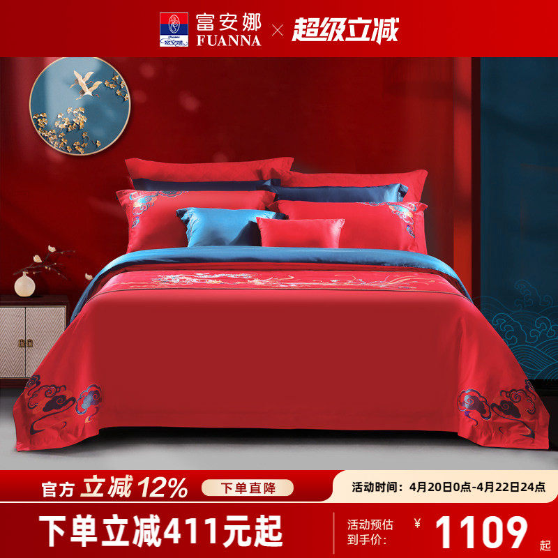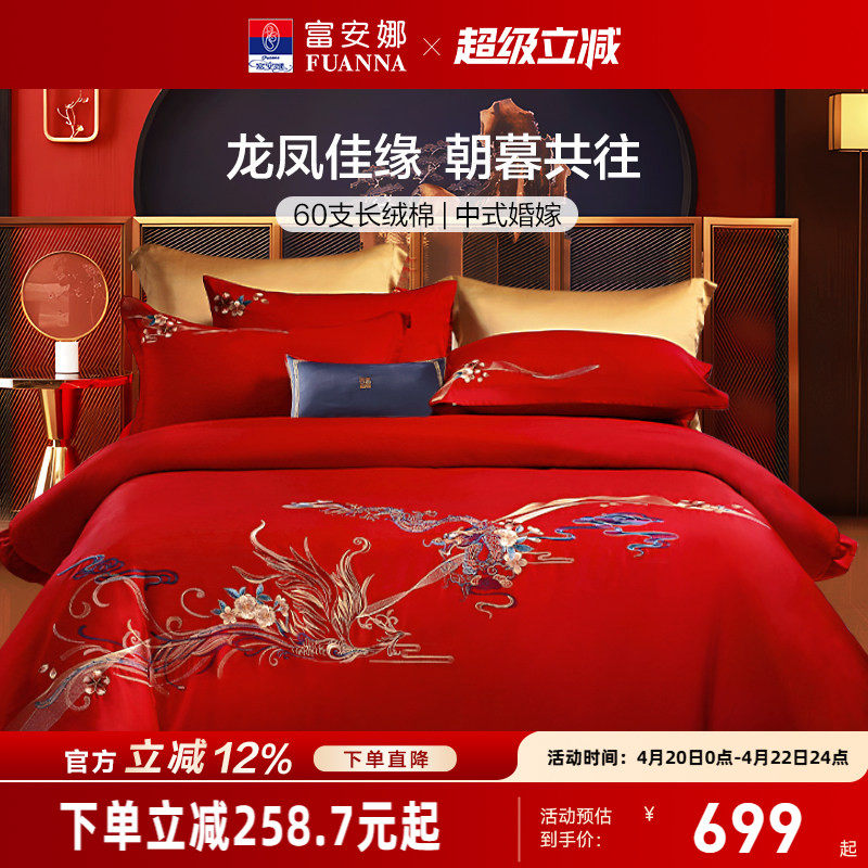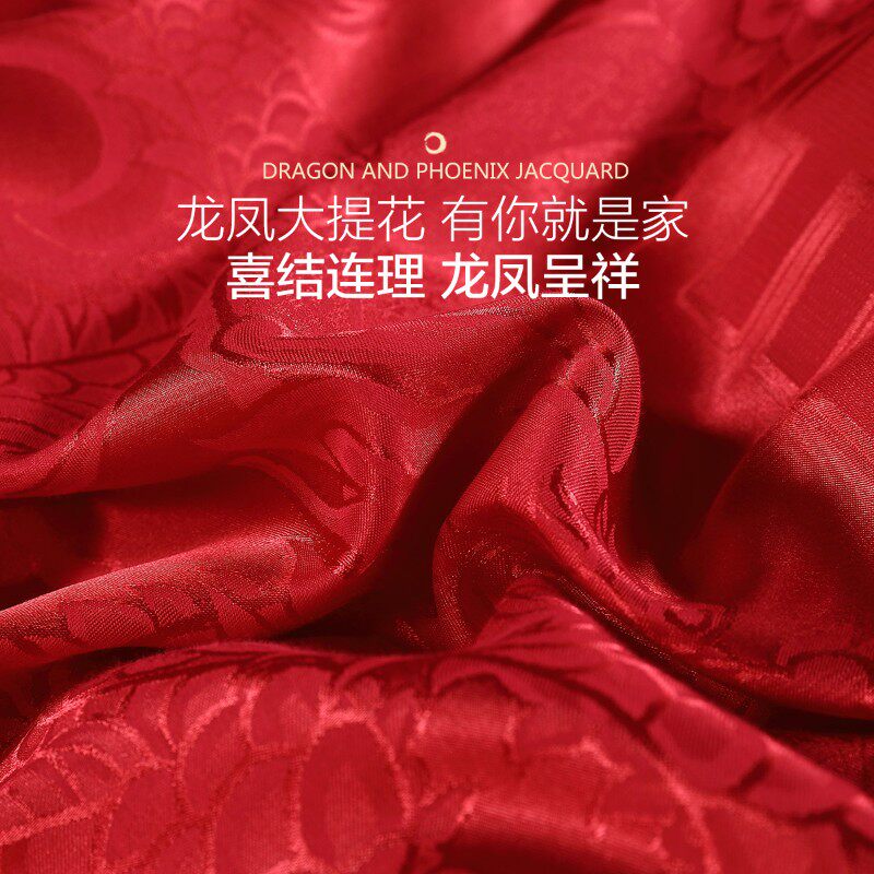 富安娜结婚六件套纯棉红色婚庆新婚龙凤陪嫁喜被婚房高级婚礼床品