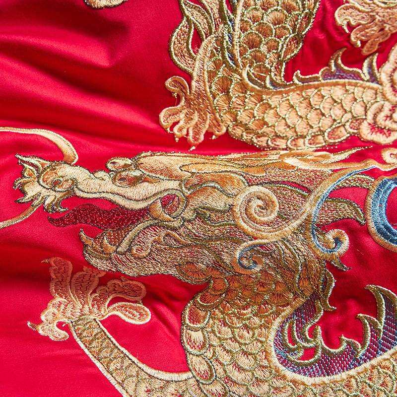 婚庆四件套大红龙凤刺绣被套新婚绣花喜被床品结婚喜庆六八十件套