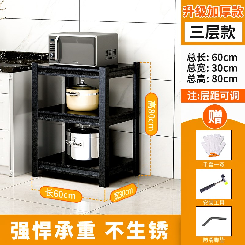 黑色厨房置物架落地三层微波炉烤箱多功能储物货架锅具收纳架家用