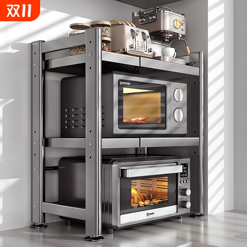 厨房微波炉置物架家用台面多功能双层三层烤箱锅具电饭煲收纳架子