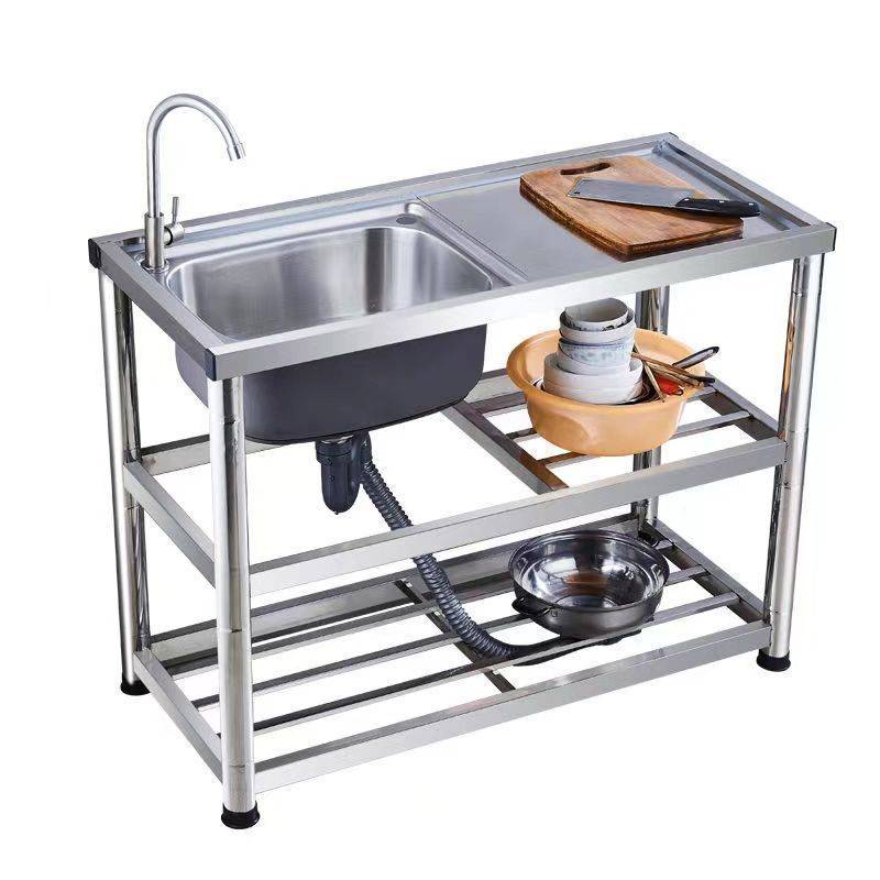 不锈钢支架水槽三层加厚厨房家用单槽厨房三层置物架洗手盆洗菜池
