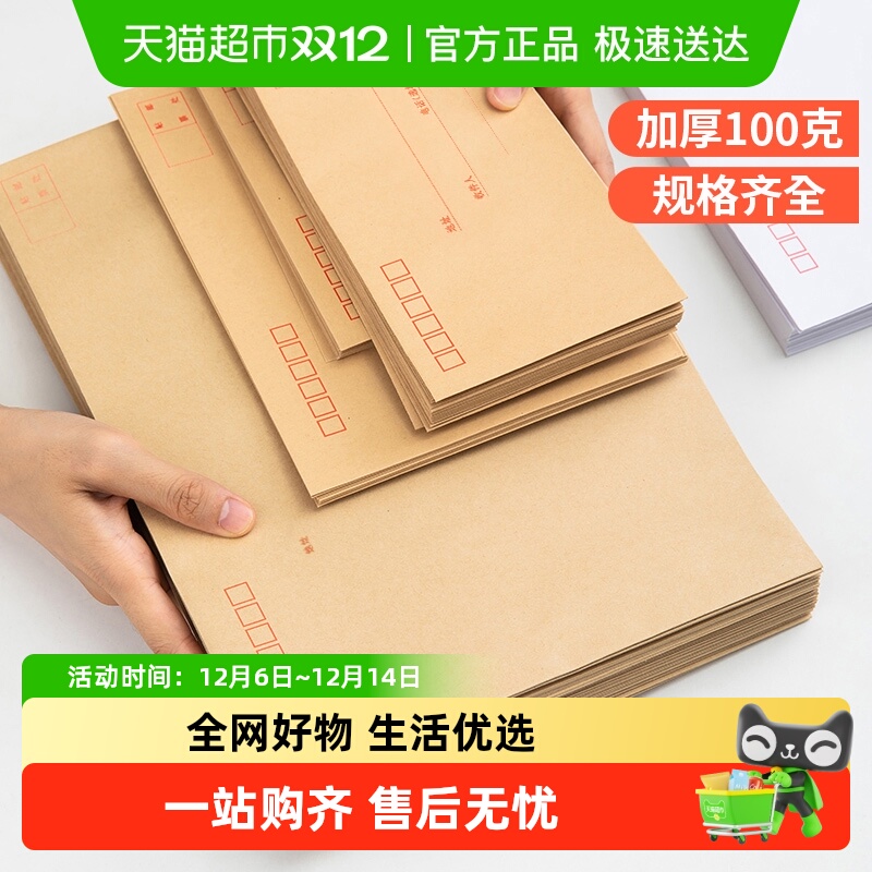 晨光文具 牛皮纸信封加厚多规格邮局标准3号5号7号大号黄色印刷双胶简约增值税发票袋批发信封袋