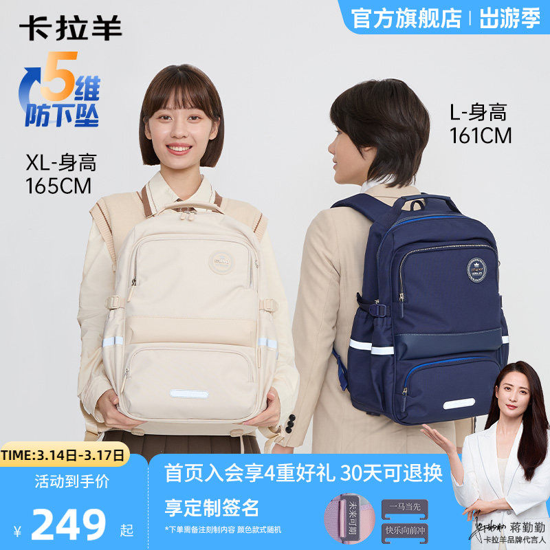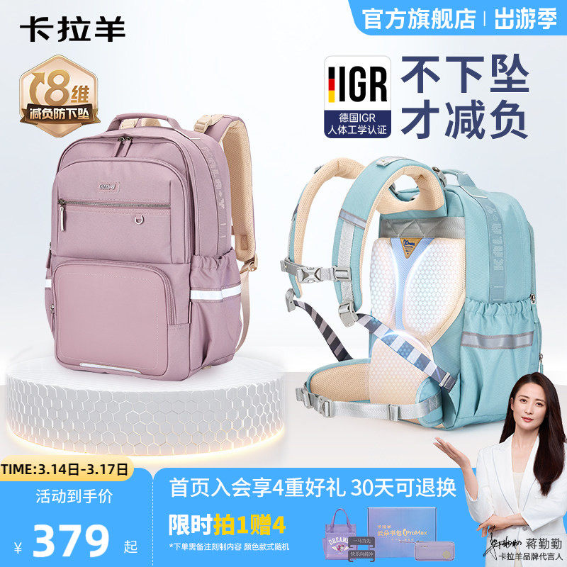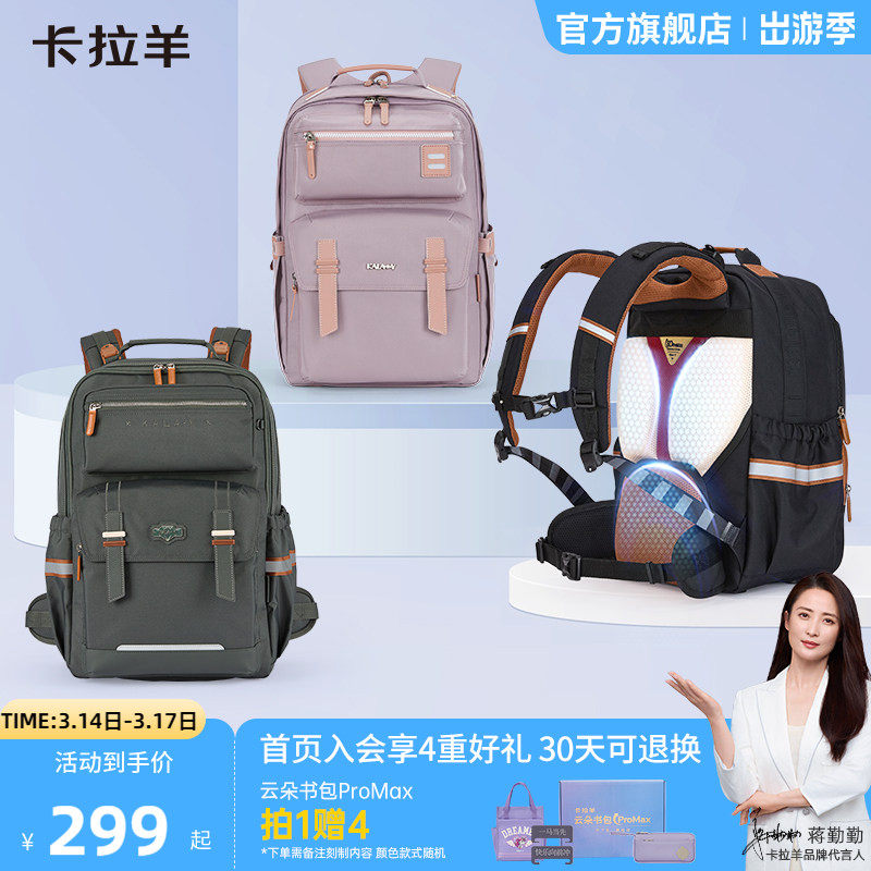 卡拉羊中学生书包减负风琴书包男女生青少年书包小学生书包儿童双肩包男孩大容量女孩防水书包品牌旗舰正品