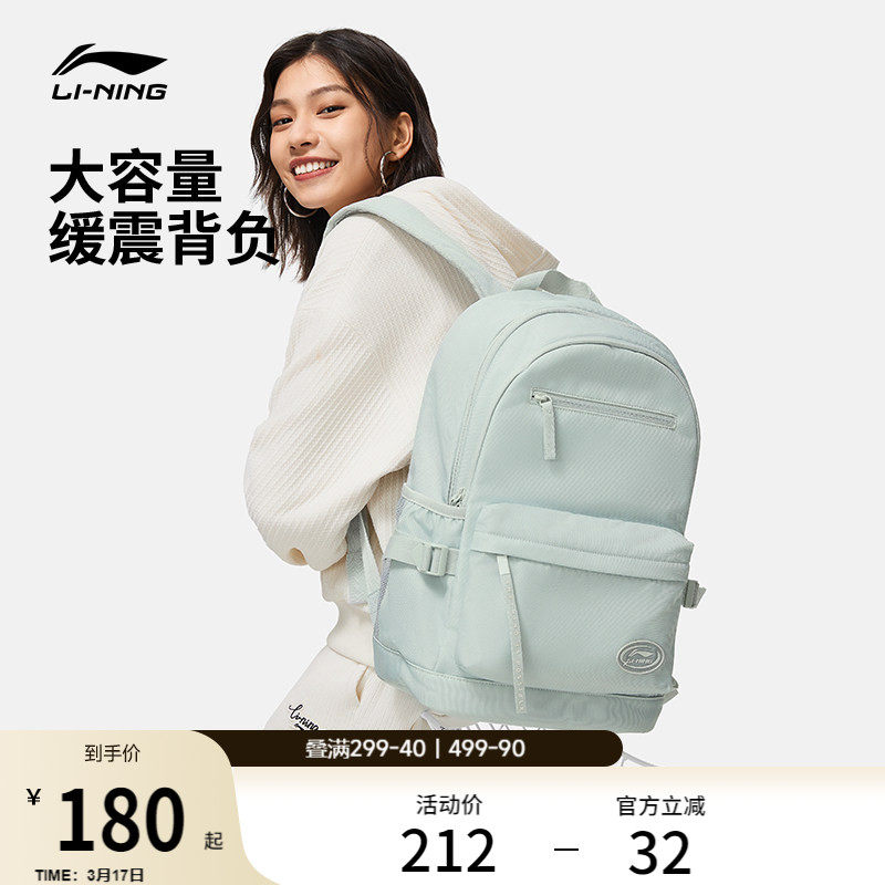 李宁双肩包女款初高中学生书包正品百搭大容量旅行通勤电脑背包男