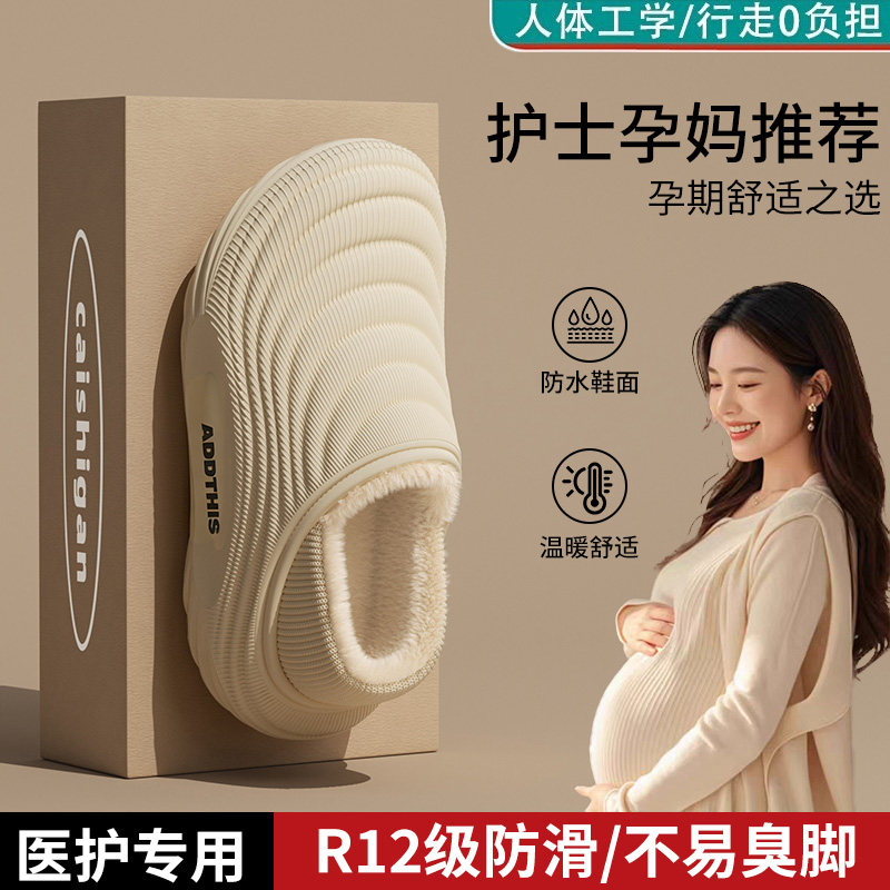 孕妇防滑棉拖鞋女2025新款保暖家居加绒加厚外穿防水厚底包跟棉鞋