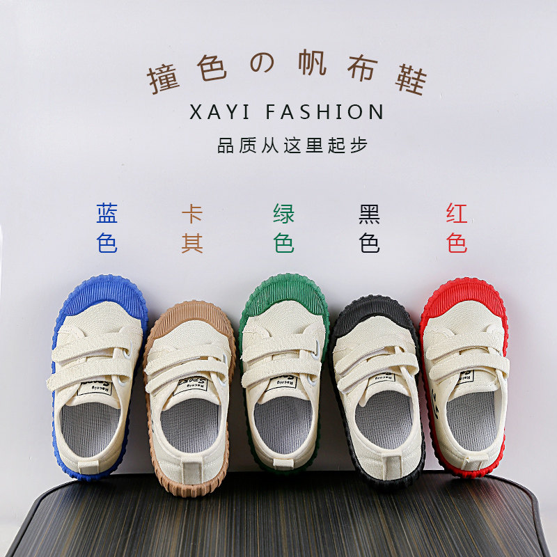 儿童帆布鞋春秋男童布鞋软底童鞋女童幼儿园室内魔术贴防滑透气鞋