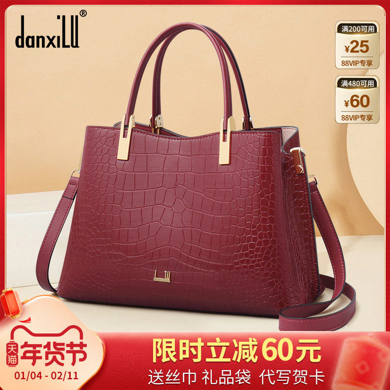 丹希路新款轻奢真皮女包婆婆手提包中年红色结婚婚包送妈妈包大气