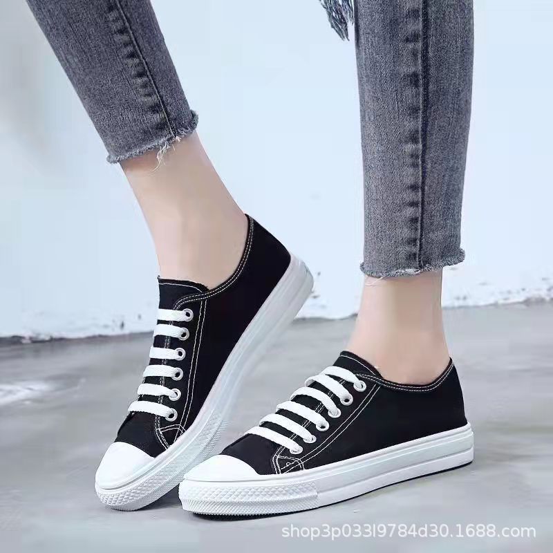8年老店 春秋季学生板鞋现货平跟低帮纯色黑色女帆布小白鞋百搭