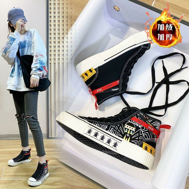 - 高帮厚底帆布鞋女