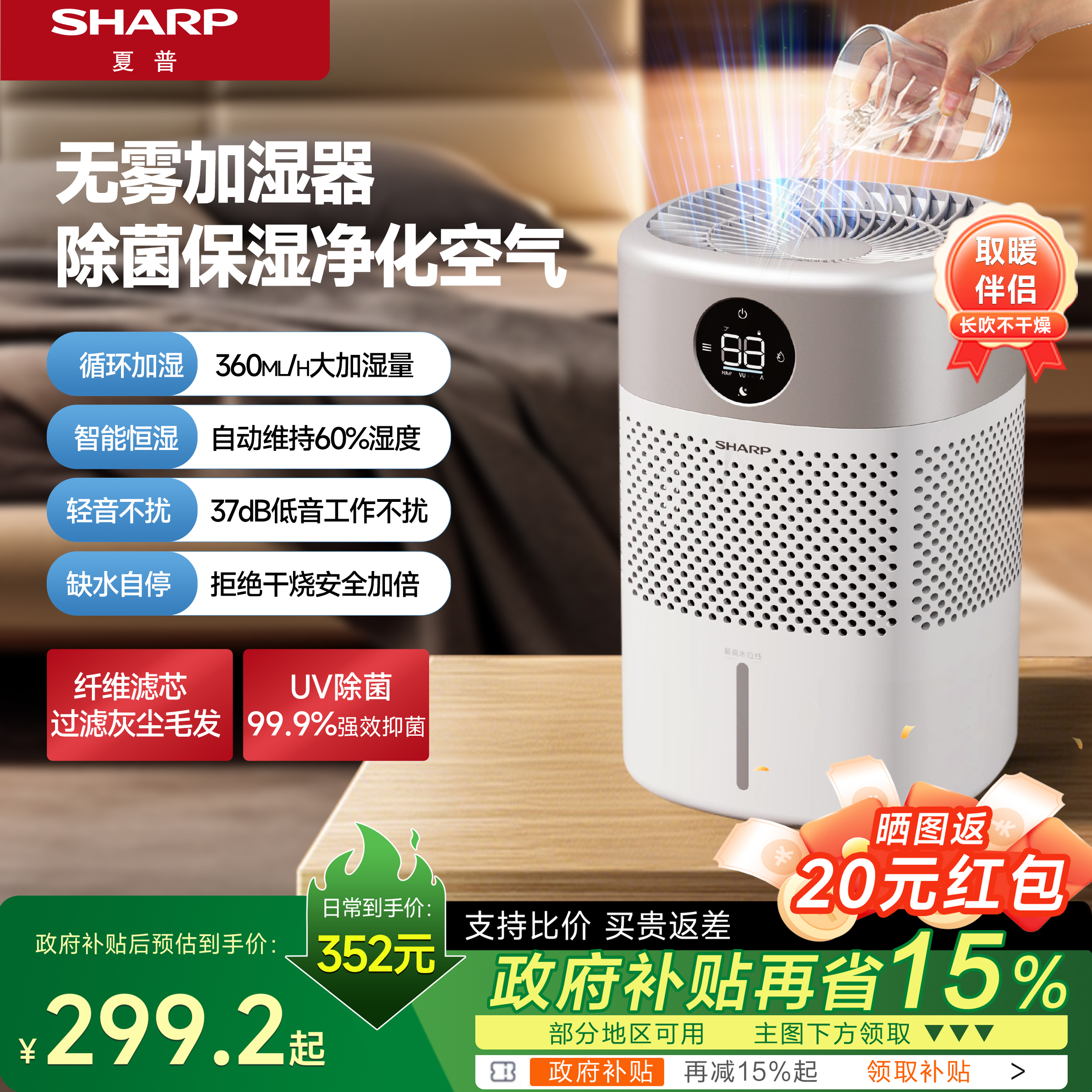 山姆同款夏普无雾加湿器家用卧室保湿器大雾量空气净化轻音桌面款