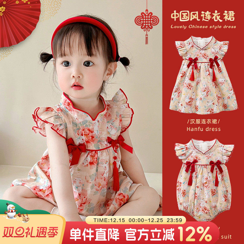 旗袍儿童夏款2025女童唐装碎花婴儿连衣裙宝宝复古古装中国风裙子