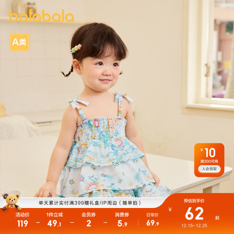 巴拉巴拉婴儿连衣裙女童裙子宝宝公主裙小童吊带裙新款夏装俏皮萌