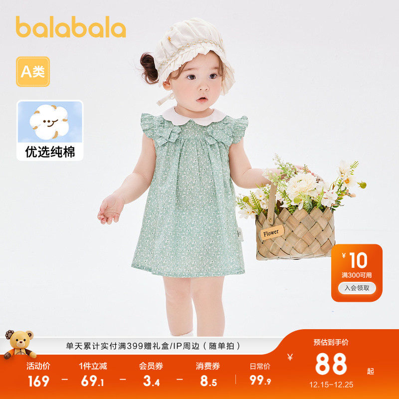巴拉巴拉童装婴儿连衣裙女童儿童宝宝小童公主裙新款夏装甜美可爱
