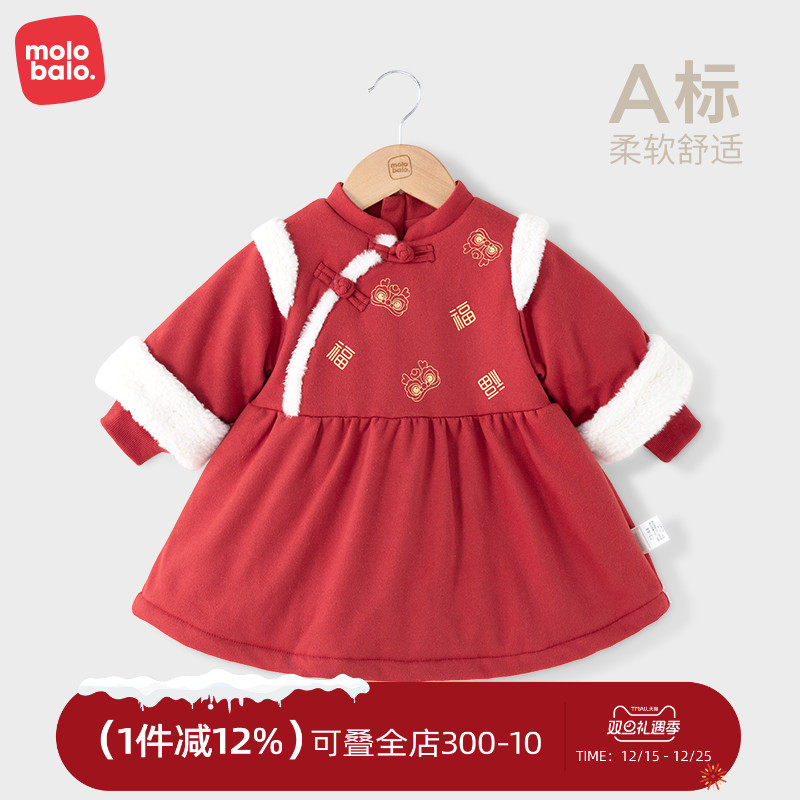 麦拉贝拉婴儿连衣裙秋冬季龙年女宝宝夹棉保暖公主裙女孩拜年服装