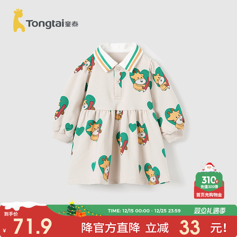 童泰婴儿连衣裙春秋纯棉女宝宝裙子儿童翻领蓬蓬裙女童外出公主裙