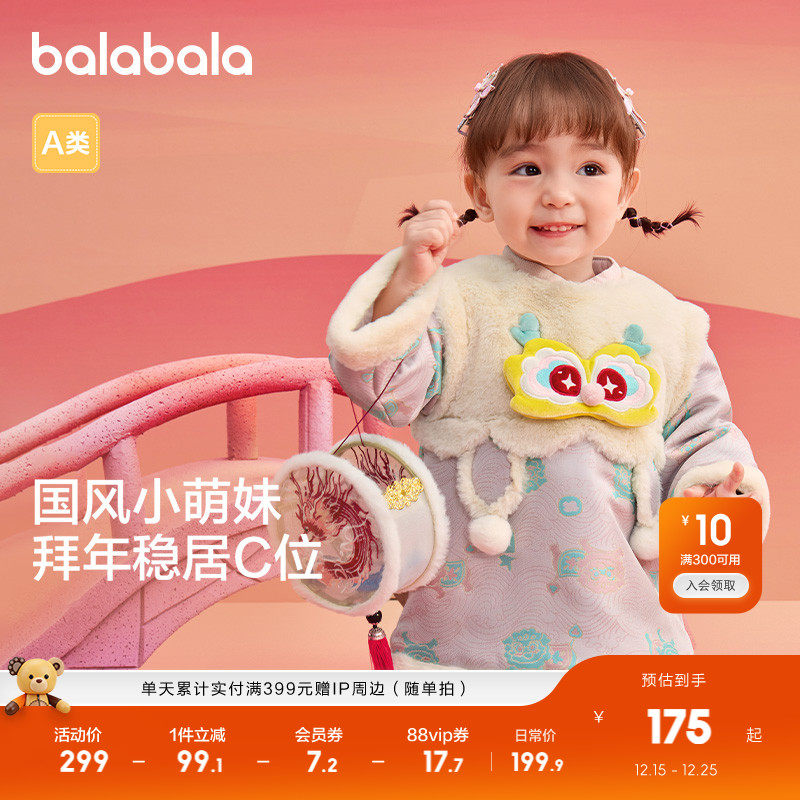 巴拉巴拉婴儿连衣裙儿童裙子2025新款秋装女宝宝拜年服国风童装潮