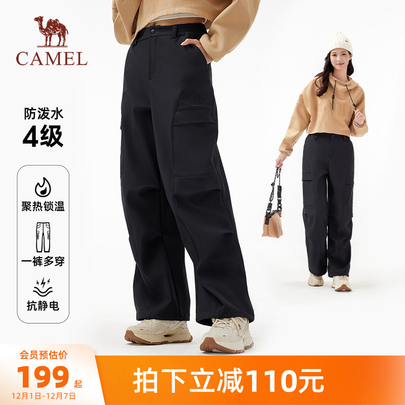 骆驼户外软壳裤男秋冬防风防泼水加绒保暖抗静电弹力直筒登山裤女