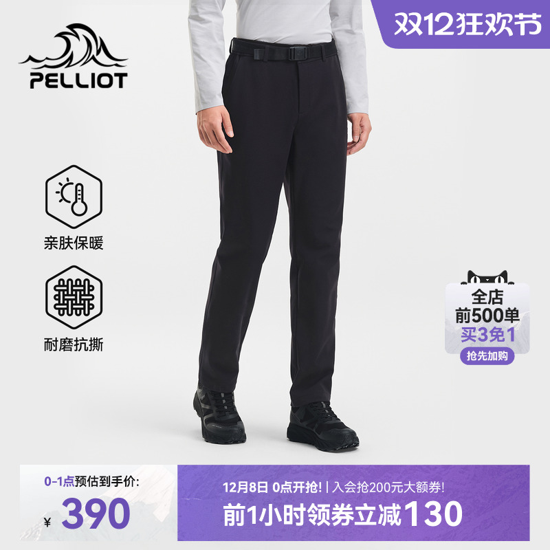 【风盾】伯希和户外加绒软壳裤男秋冬防风弹力保暖运动徒步登山裤