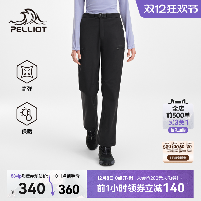 【风盾C24】伯希和户外软壳裤女秋冬保暖徒步抓绒裤子防风长裤男