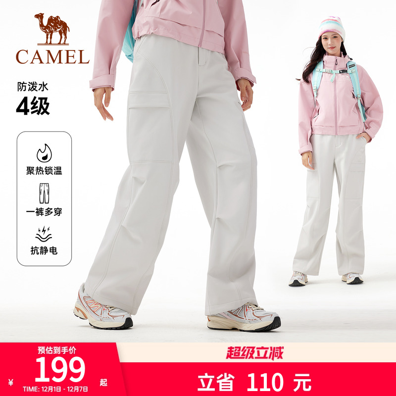骆驼户外软壳裤女25秋冬防风防泼水加绒保暖弹力直筒冲锋登山裤男