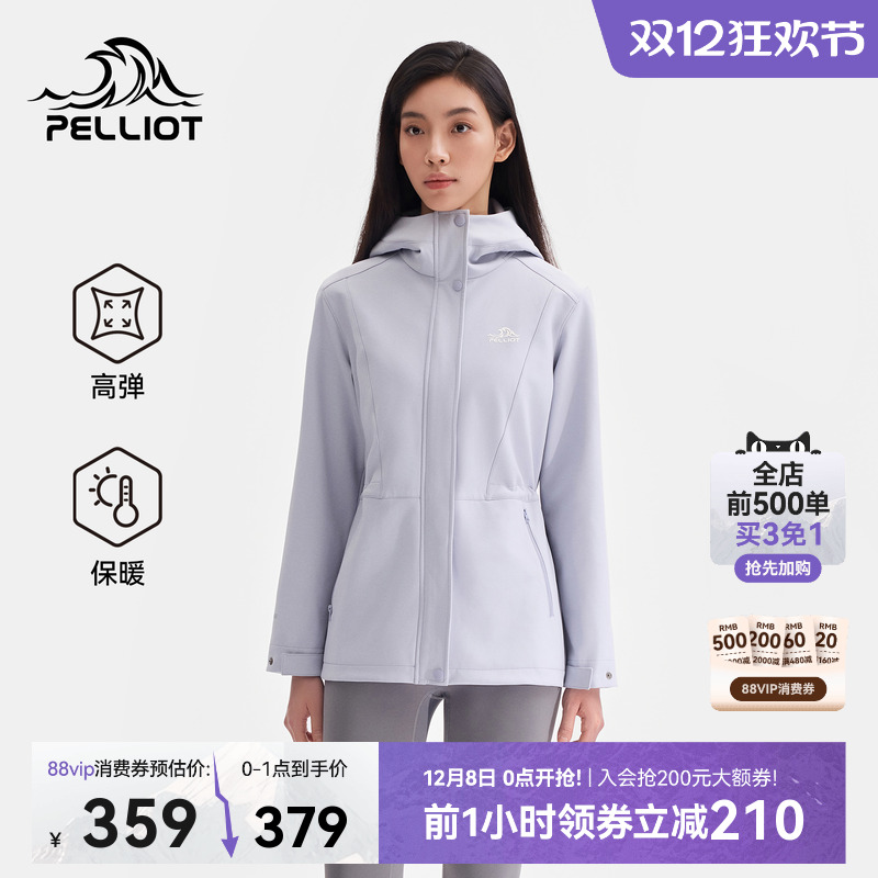 伯希和户外软壳衣女款冬季新款防风保暖运动冲锋外套收腰夹克上衣