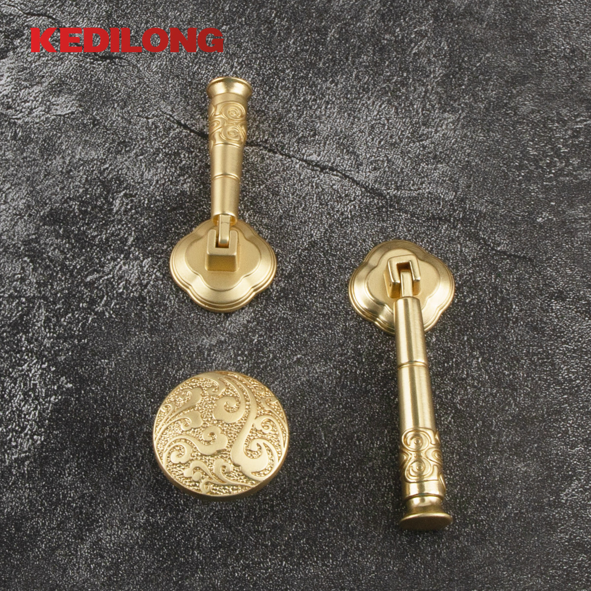 锌合金欧式复古衣柜门拉手金色古银吊环刻花柜门家具五金抽屉把手
