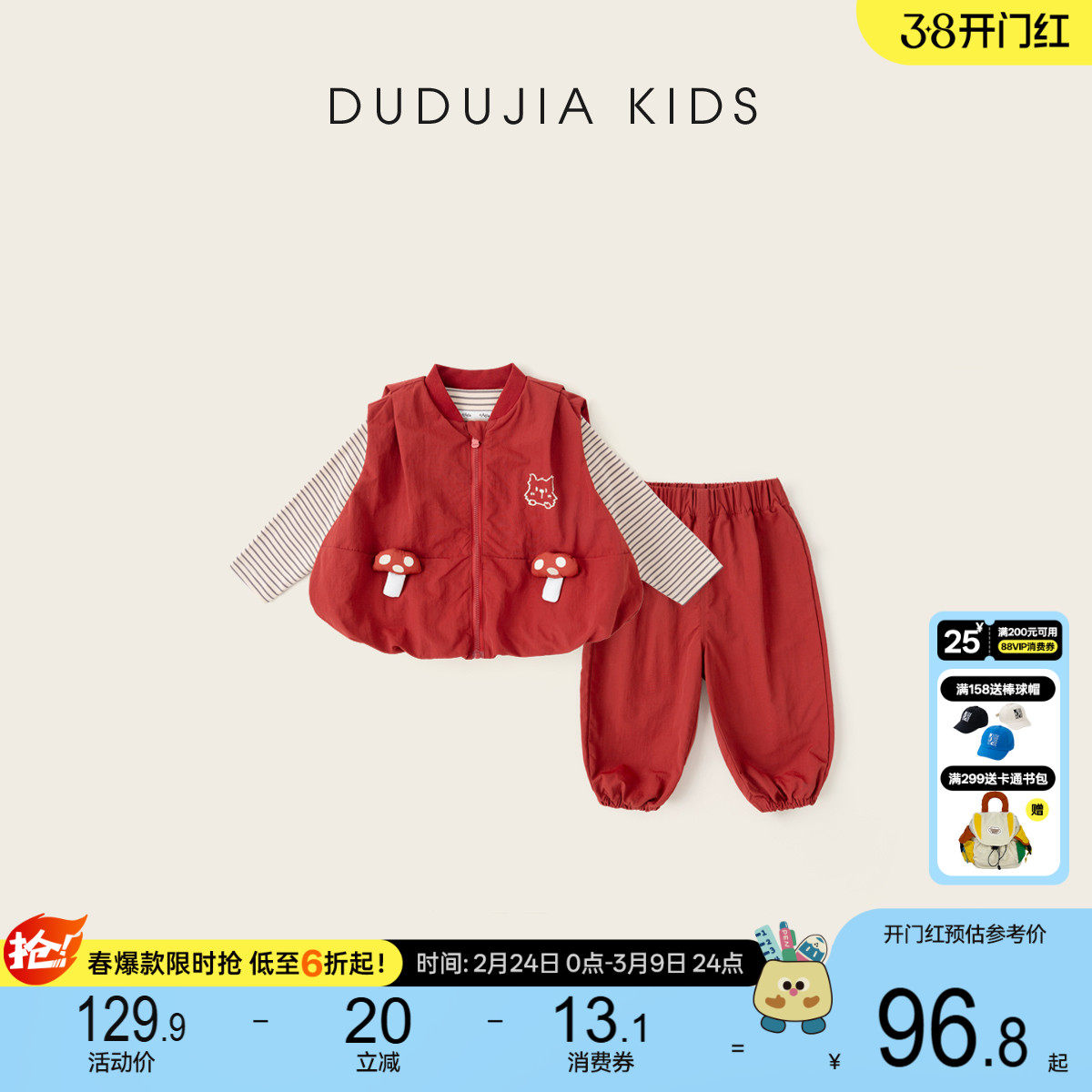 嘟嘟家儿童套装红色男童三件套女童上衣裤子洋气时尚宝宝童装潮流