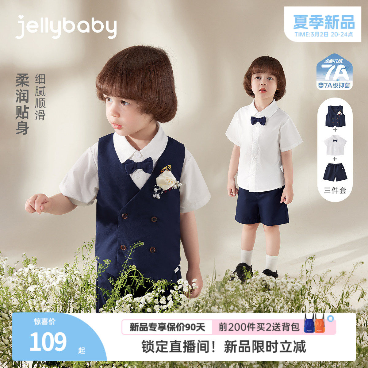 [2026夏季上新]男童三件套3小男孩夏装短袖礼服儿童套装5宝宝衣服