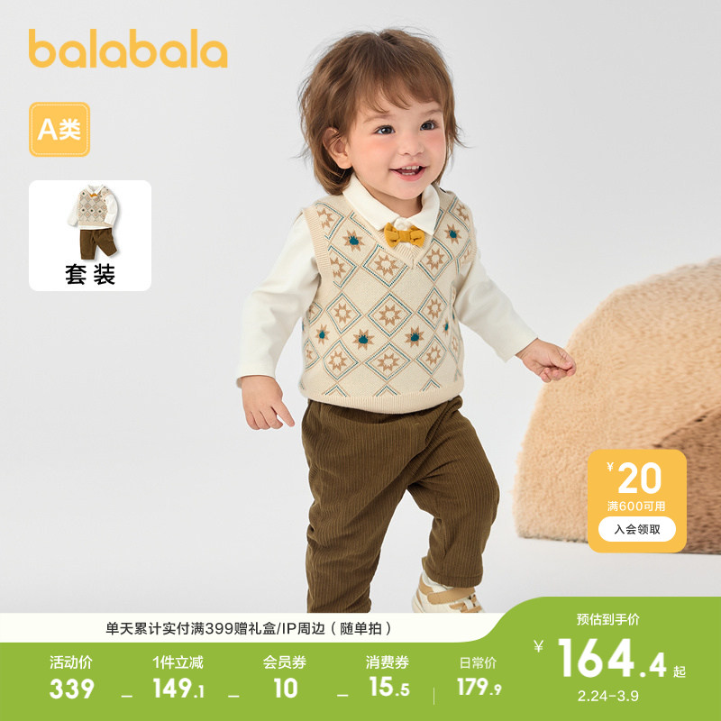 【商场同款】巴拉巴拉宝宝套装男童三件套2025新款秋冬装洋气百搭