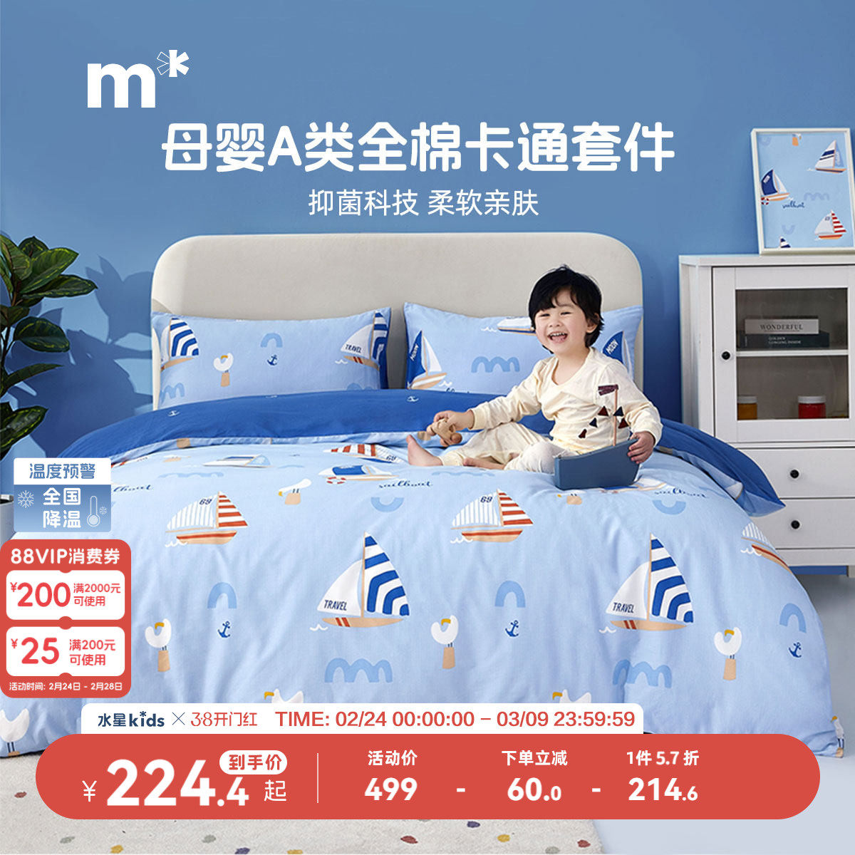 水星儿童四件套A类100纯棉男孩床上用品三件套儿童男童全棉儿童床