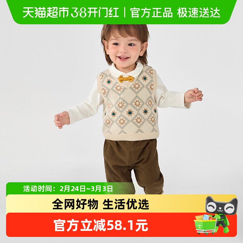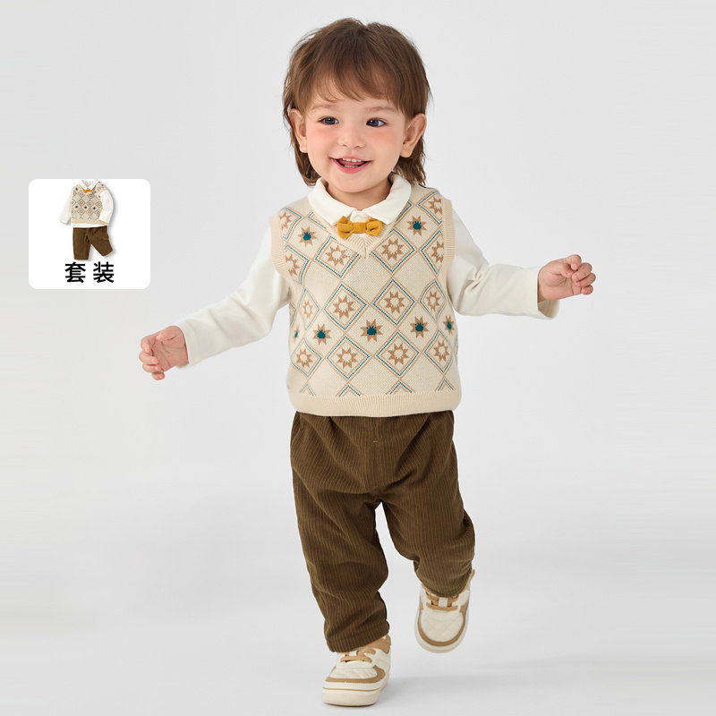 拜年男童毛衣马甲套装2026新年儿童英伦学院风三件套男孩时髦穿搭