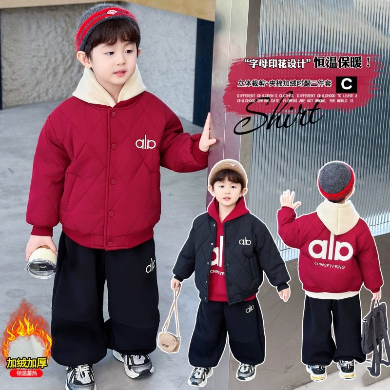 儿童冬装时尚男童三件套冬季加绒棒球服外套帅气棉衣加厚卫衣套装