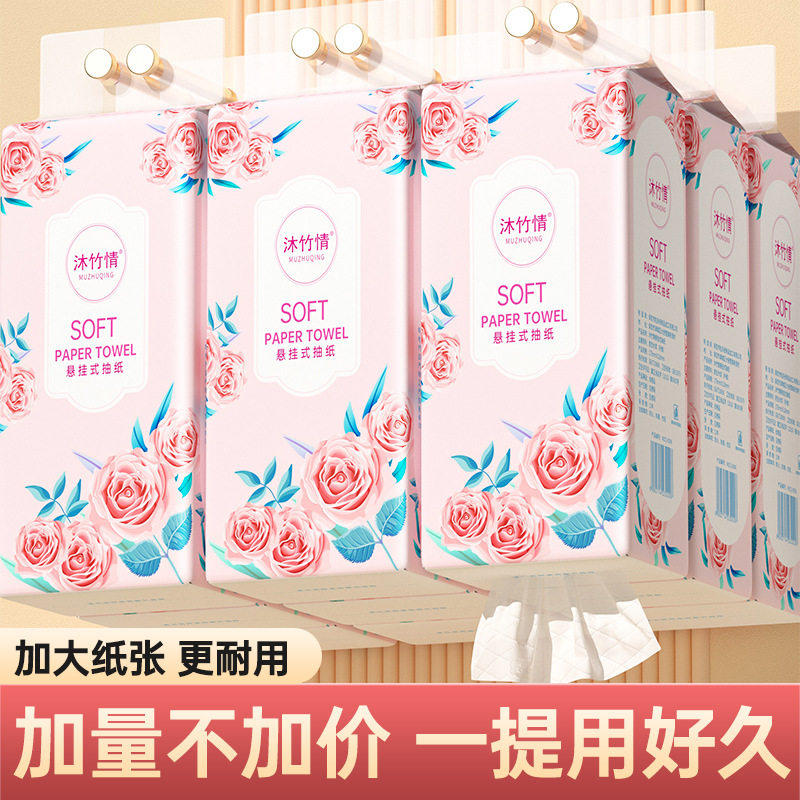 漫花悬挂抽纸大包纸巾原生竹浆餐巾纸家用实惠厕纸悬挂抽取式纸巾