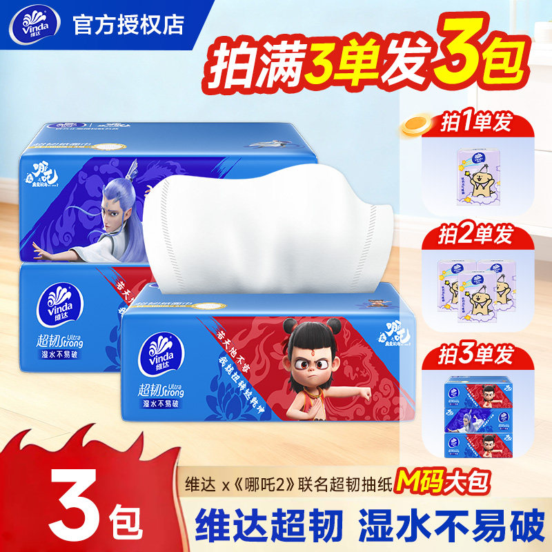 维达抽纸M码超韧100抽2元好物一分购亲肤家用加大加厚抽取式纸巾