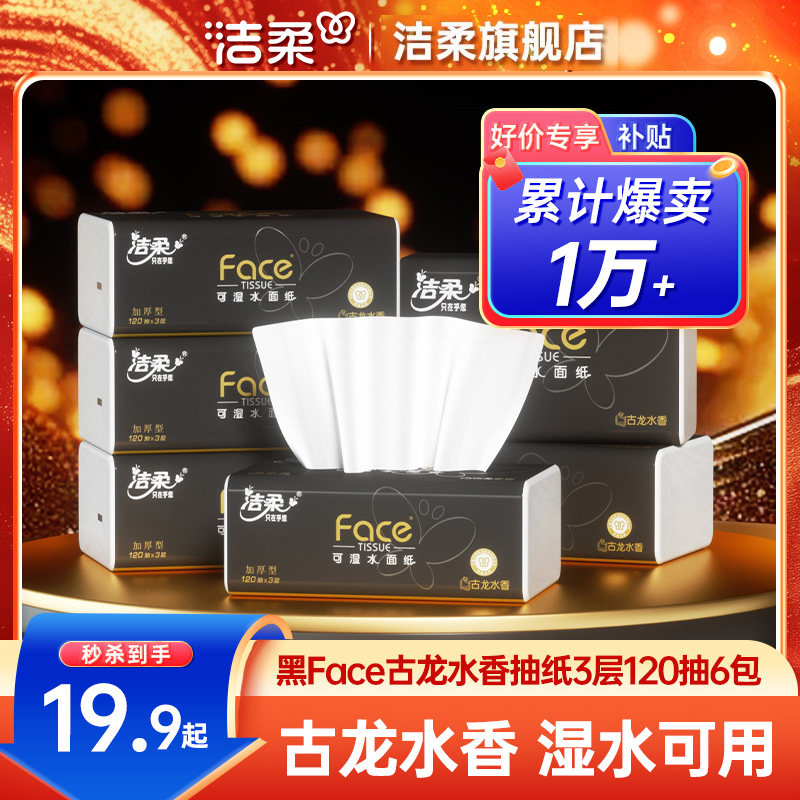 洁柔黑Face抽纸古龙水香抽取式纸巾面巾纸120抽卫生纸家用实惠装
