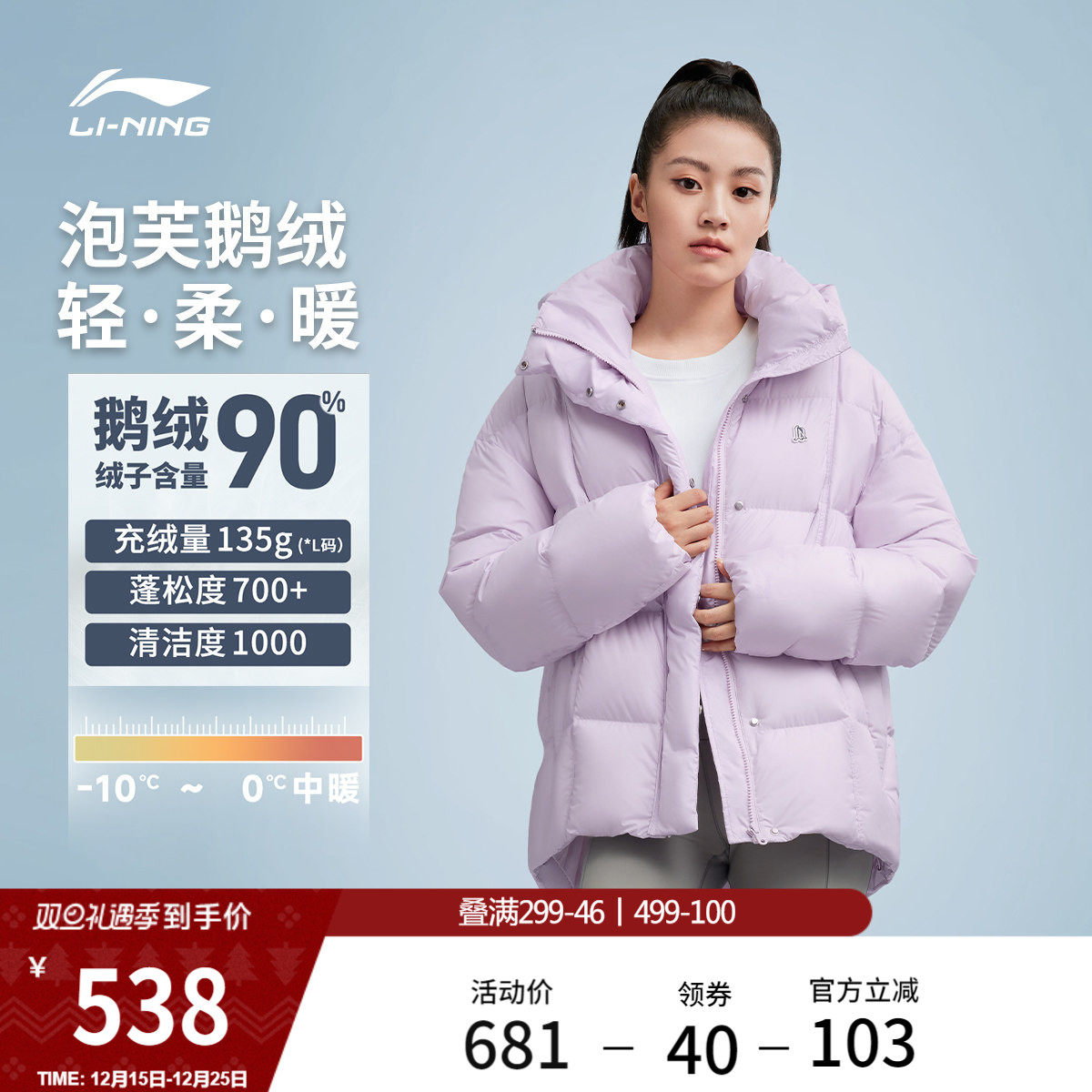 李宁火锅羽绒服丨女款冬季新款泡芙衣服中长款鹅绒保暖运动外套女