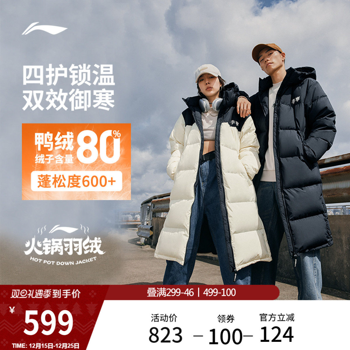 李宁火锅羽绒服丨男冬季鸭绒情侣防寒加厚保暖长款衣服运动外套女