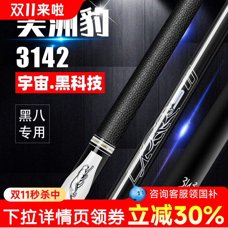 美洲豹宇宙黑科技台球杆黑8球杆小头中式黑八美式九球大314中头杆