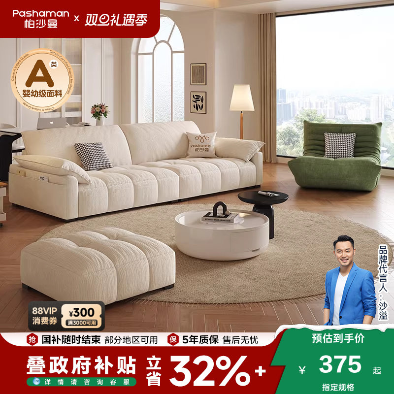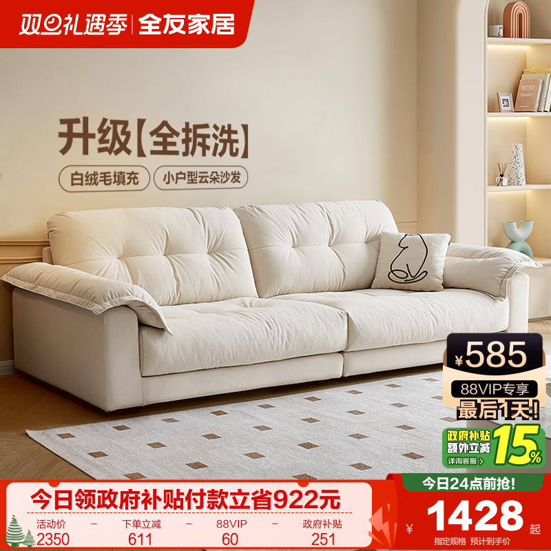 政府补贴全友家居云朵沙发客厅直排2025新款小户型猫抓布艺沙发