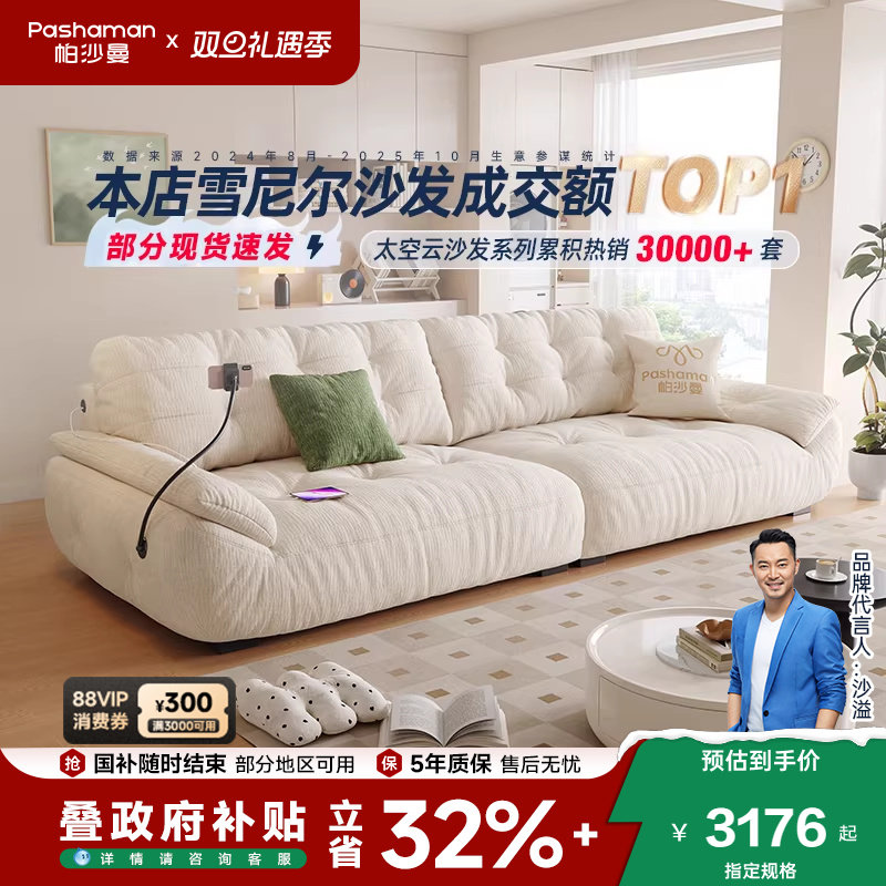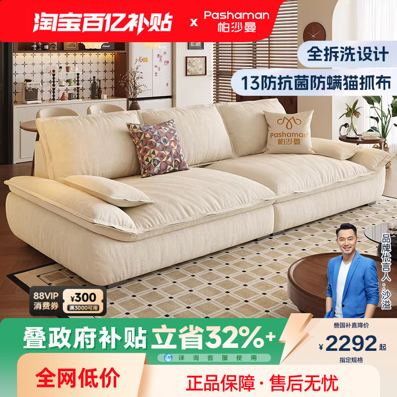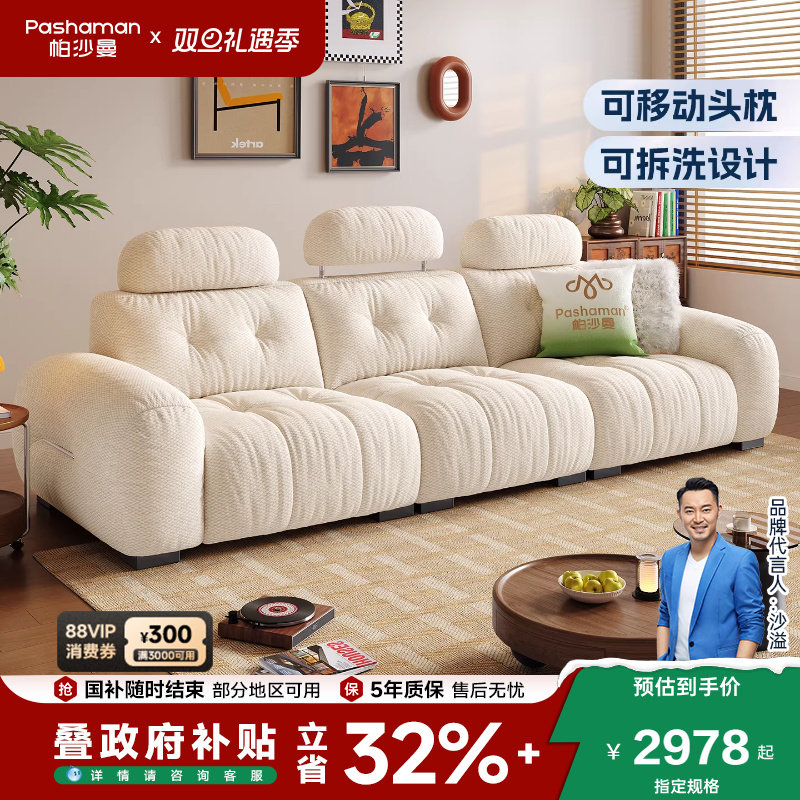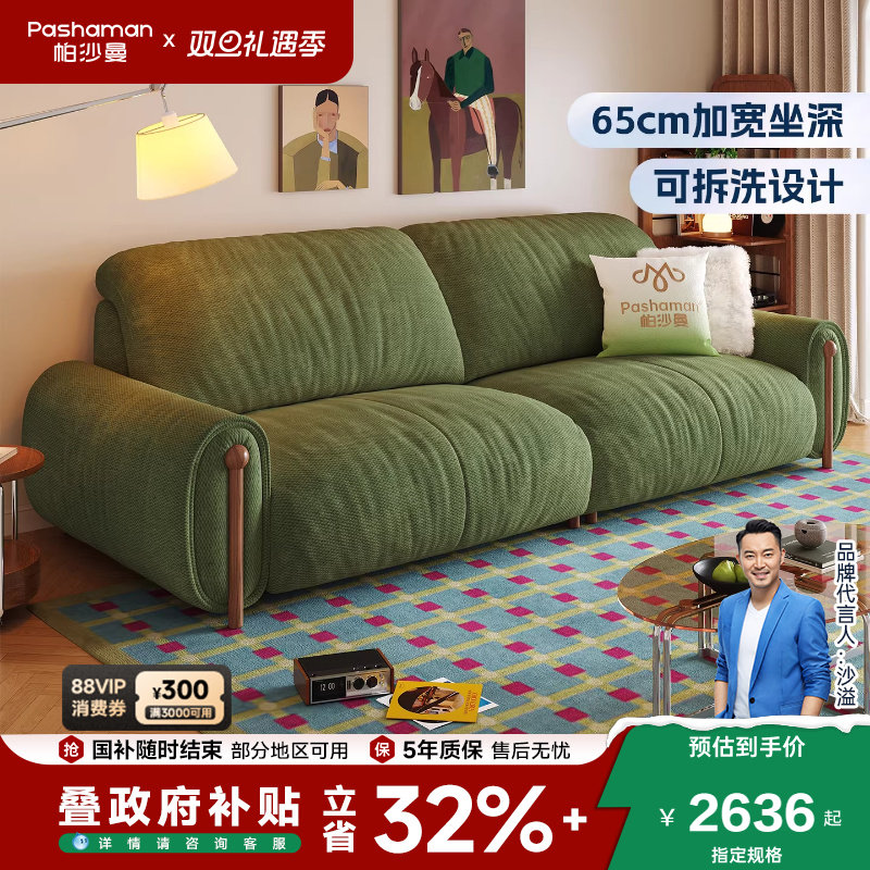帕沙曼云朵布艺沙发小户型客厅2025新款复古风实木沙发雪尼尔直排