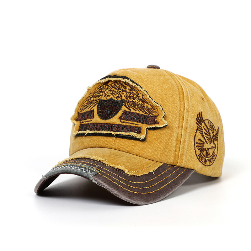 时尚潮流欧美棒球帽男女通用情侣帽水洗磨破做旧春秋棉质贴布帽子