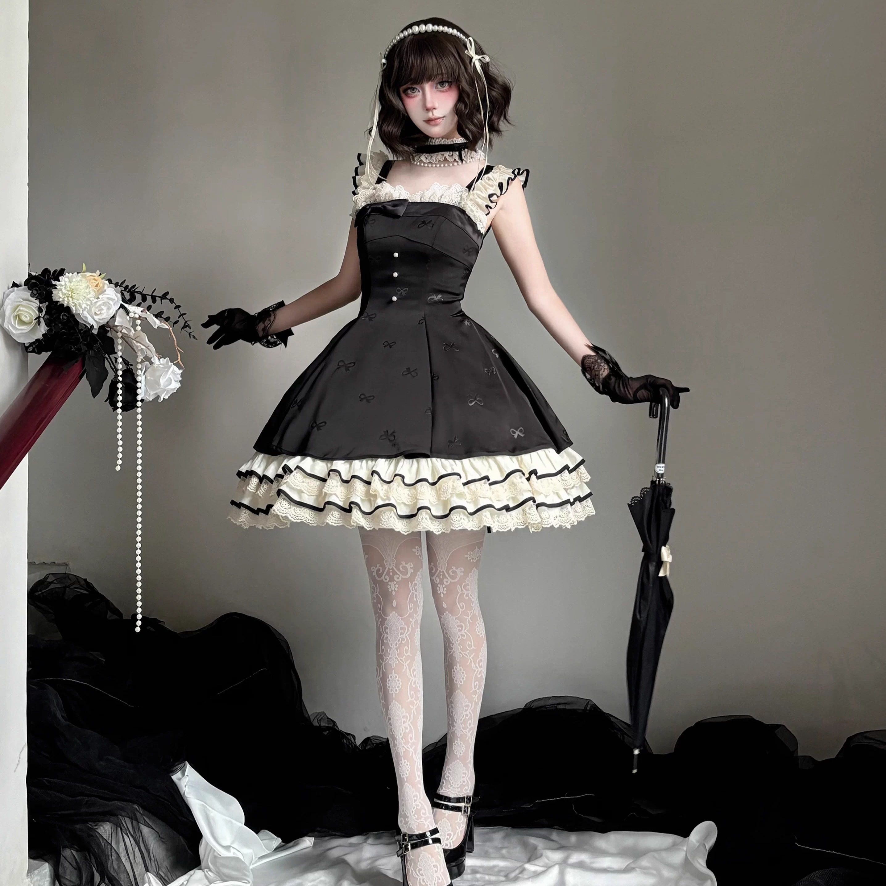 纯欲甜美Lolita裙洋装重工设计感蕾丝花边吊带蝴蝶结蓬蓬连衣裙女