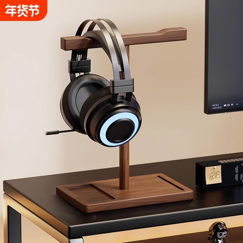 胡桃木耳机支架头戴式耳机架子实木电竞耳麦通用桌面收纳金属挂钩